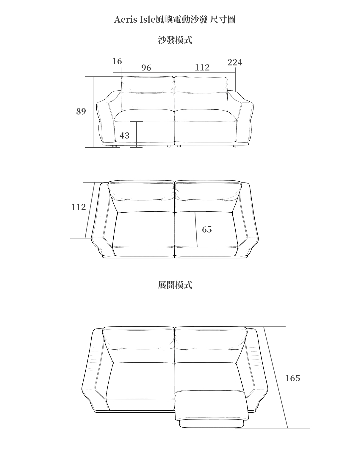 寬224cm X 高89cm X 深112cm
