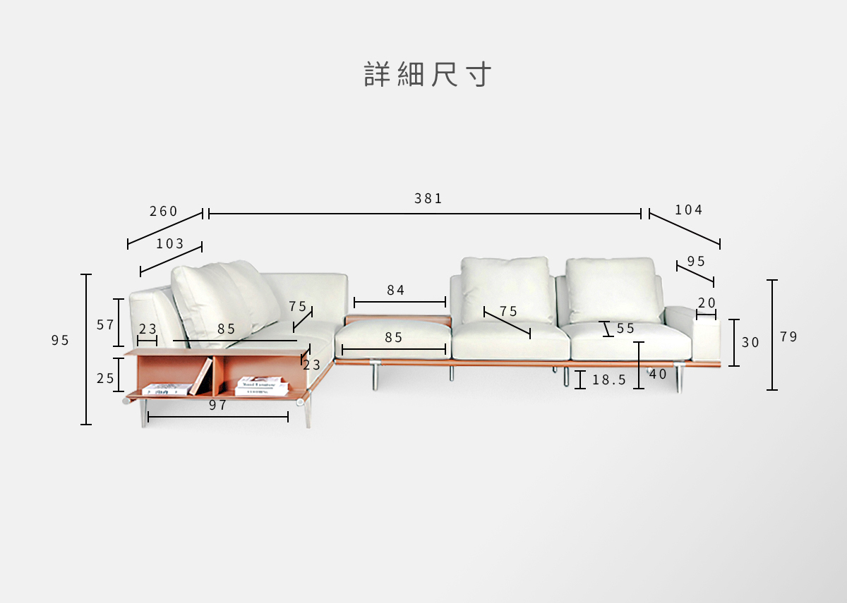 產品尺寸:長381cmx深104cmx高95cm 貴妃長255cm