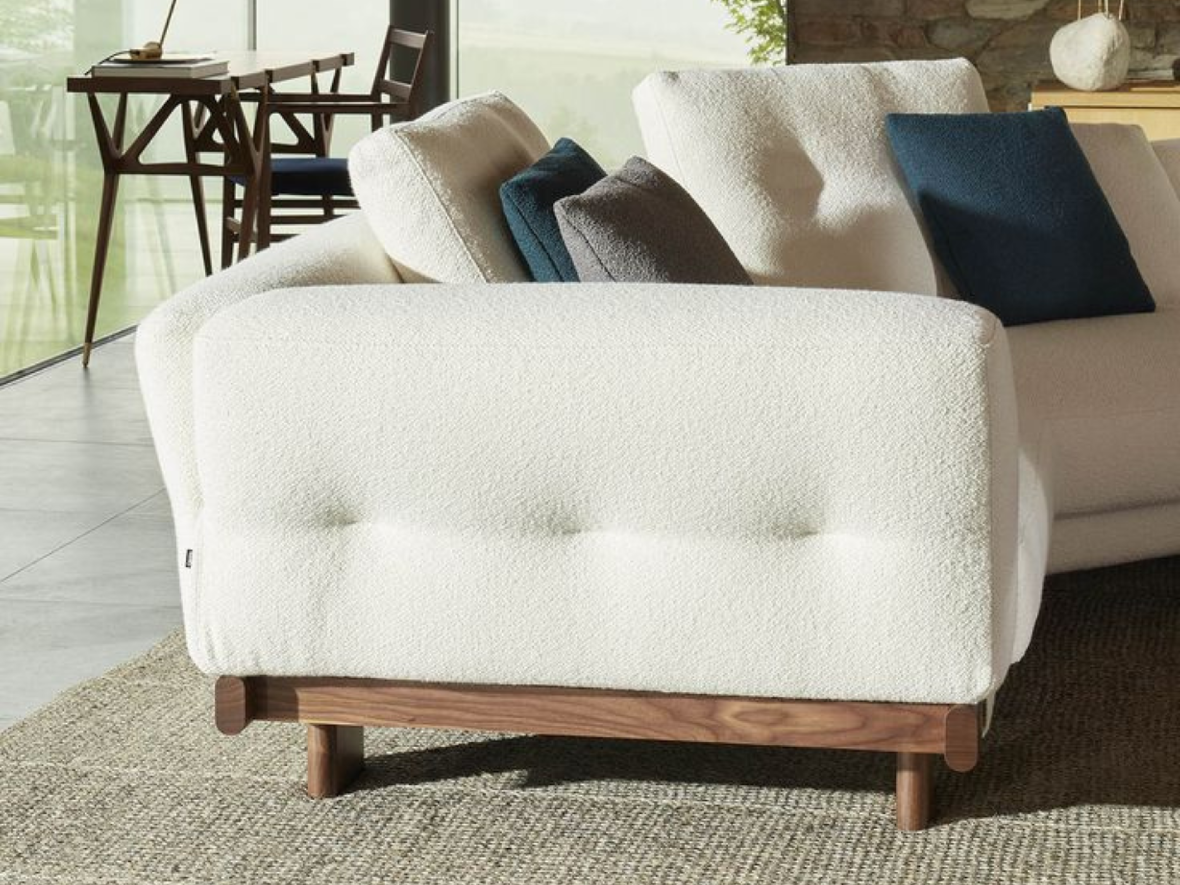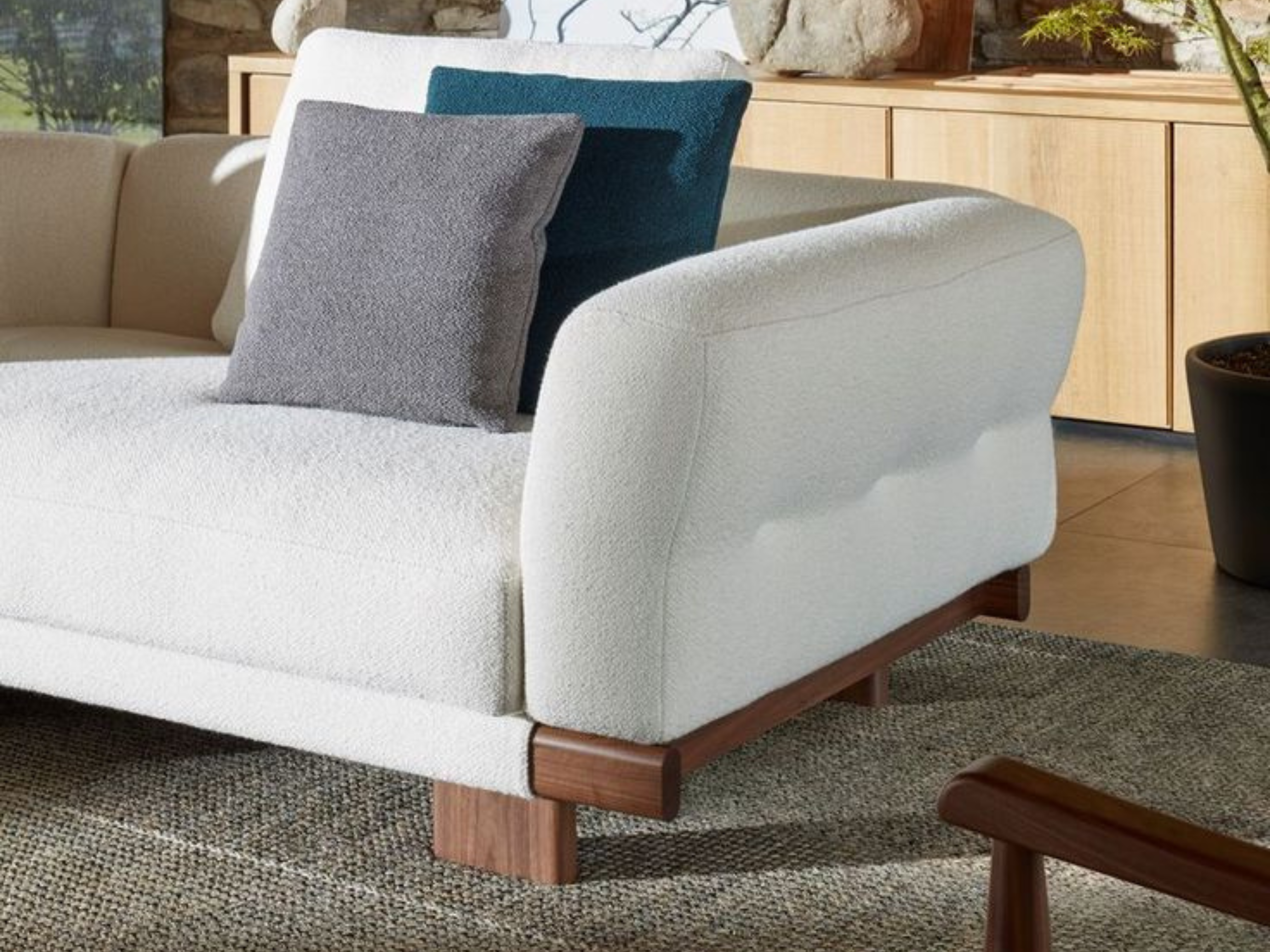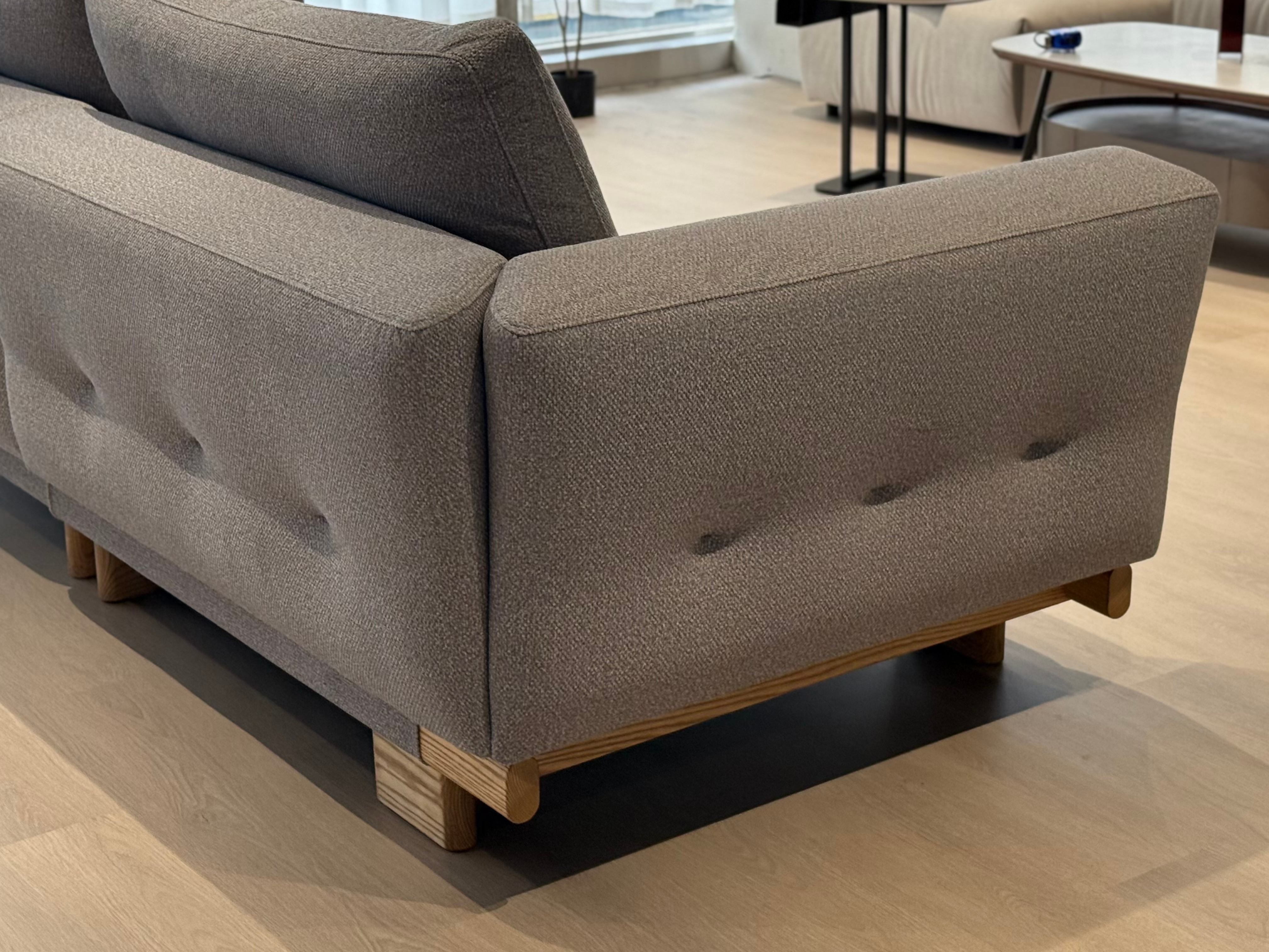 栓木實木的沙發腳座,溫潤材質如工藝品。