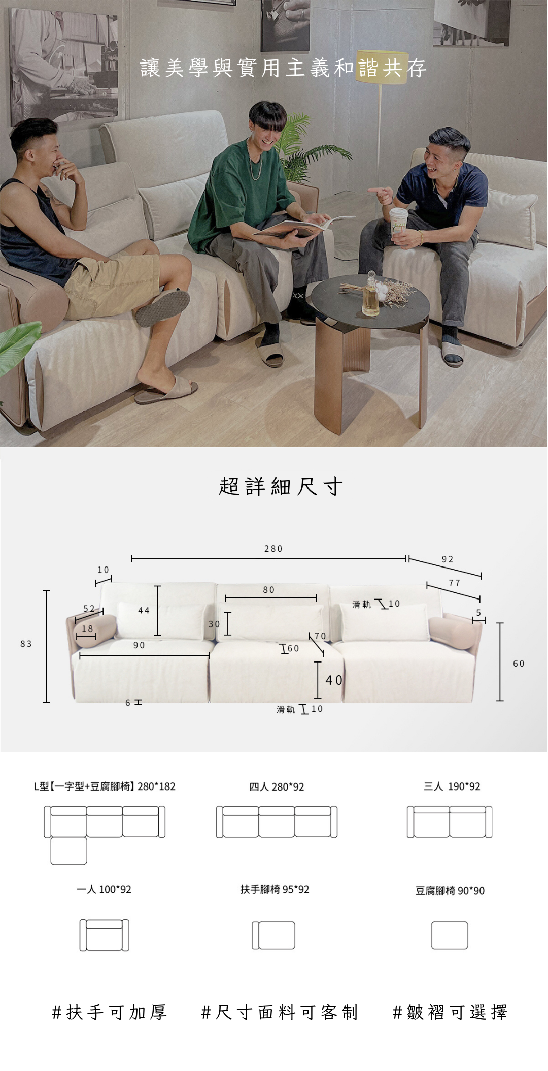 四人坐:長280cmx深92cmx高83cm