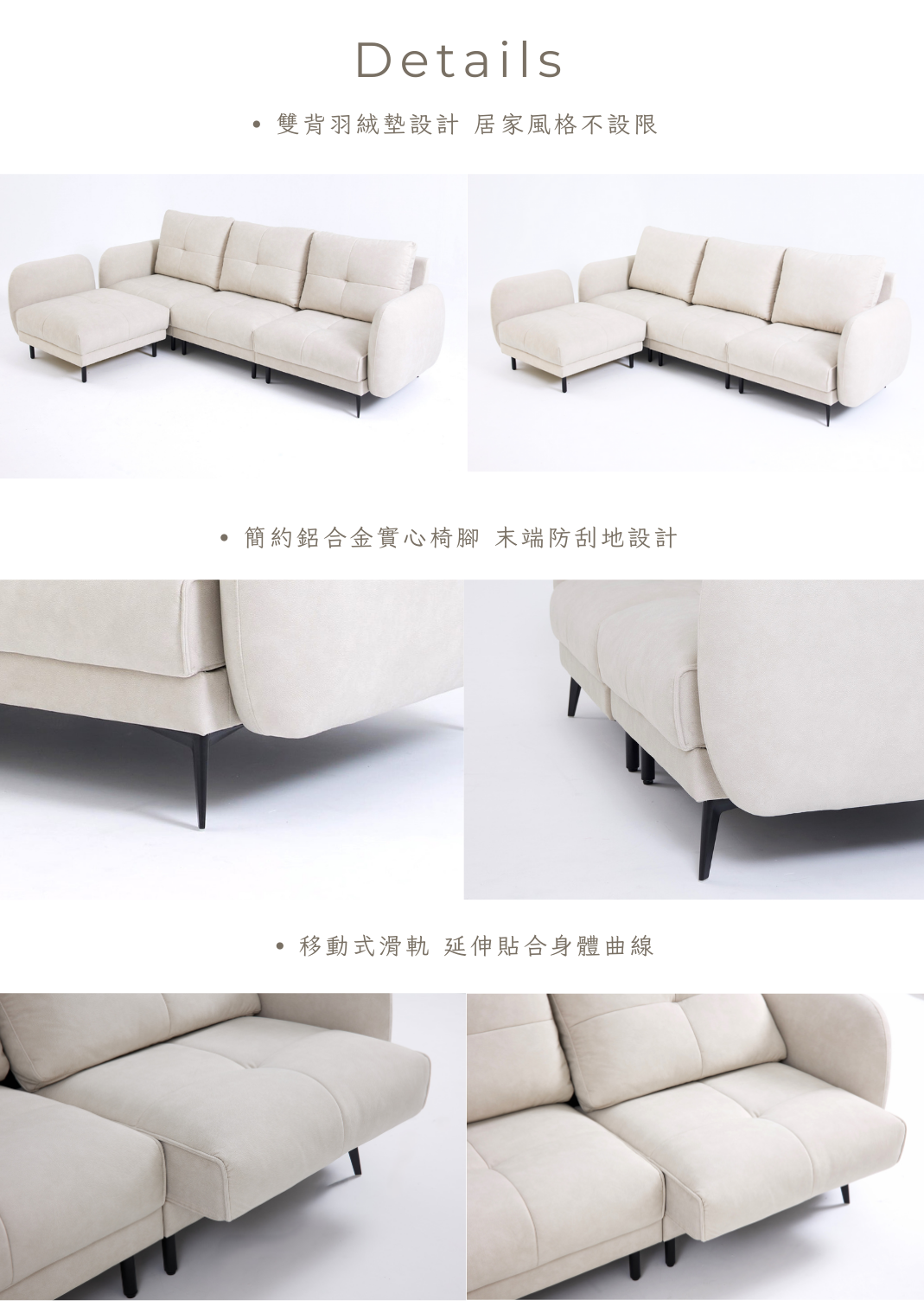 70cm 的寬廣坐深(沙發常見坐深為 50-55cm) 滑軌創造兩中不同的休憩模式。