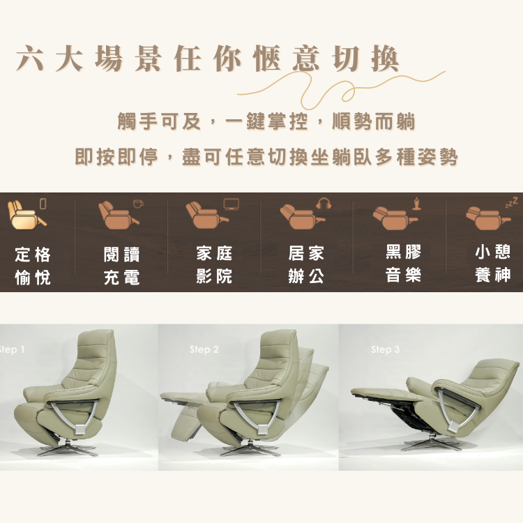 無段數傾倒,輕鬆尋找舒適的姿勢。
